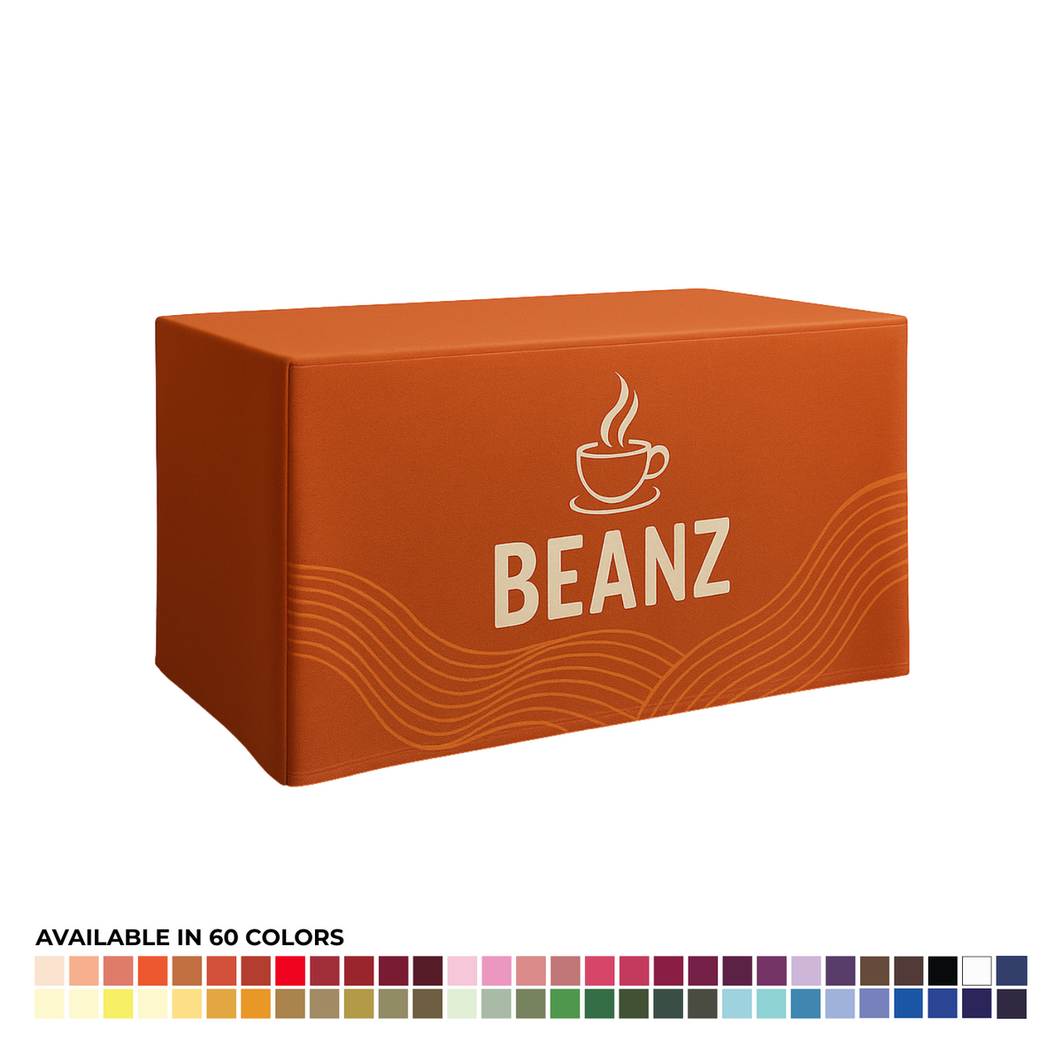 Boost your brand's impact at any gathering with a striking, tailor-made tablecloth. Infuse life into your brand with a prominent, front-facing graphic and select from a broad spectrum of 60 hues for the top, back, and side panels, ensuring a perfect match with your event's color scheme. Choose an open-back option for more flexibility. The high-quality fabric ensures the colors stay vibrant wash after wash. Made of durable poly poplin, this tablecloth is easy to care for, washable, dryable, and flame retardant, making it a practical and stylish choice for any event.