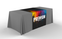 Transform any table into a brand showcase with Premium Table Runners, perfect for all events and occasions. Embrace the full spectrum of color with a design that's limited only by your imagination. Whether it’s for a trade show booth, a product launch, a corporate event, or even a festive occasion, Table Runners add a touch of sophistication while emphasizing brand visibility.