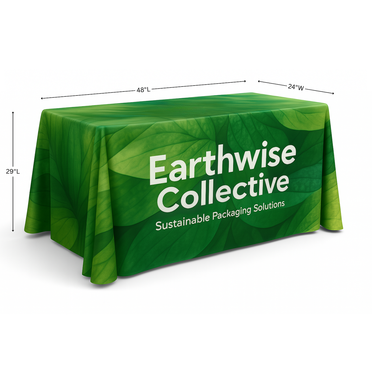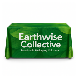 A standout choice for enhancing your brand at various events, including trade shows, exhibitions, and corporate gatherings. These full color eco-friendly table throws feature high-quality, dye-sublimated graphics, ensuring your display is visually striking from every angle. The fabric elegantly drapes to the floor on all sides, offering full coverage while still allowing easy access to under-table storage. Opt for an open back design for enhanced accessibility and more convenient seating arrangements. Crafted for durability and ease of care, these table throws are ideal for repeated use, and are washable and dryable. Customize every inch to embody your brand's distinctive style, creating an impactful and lasting impression at every event.