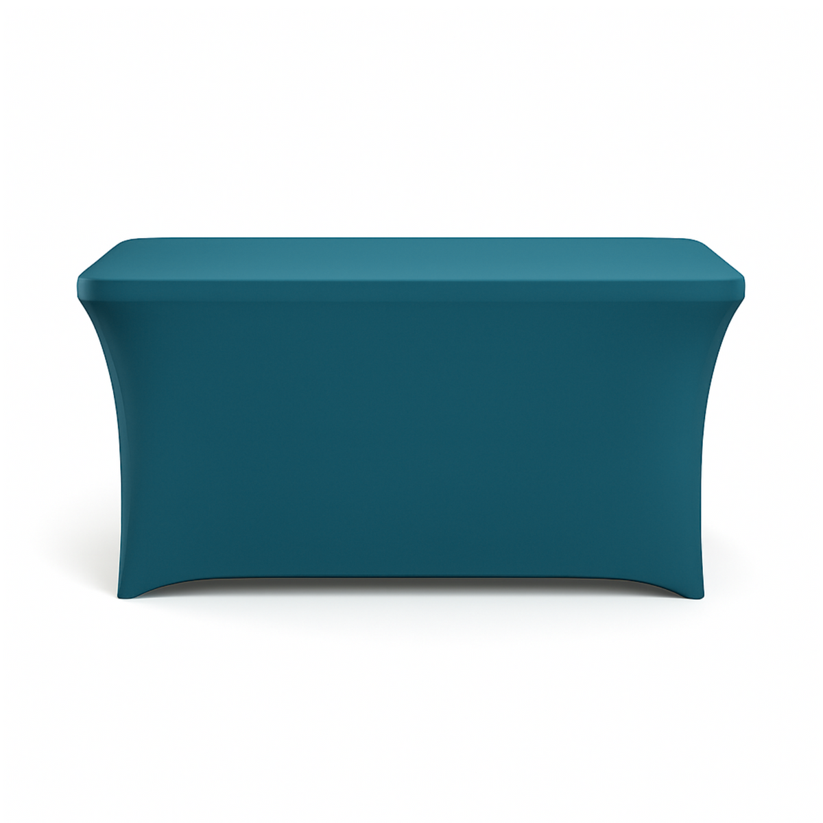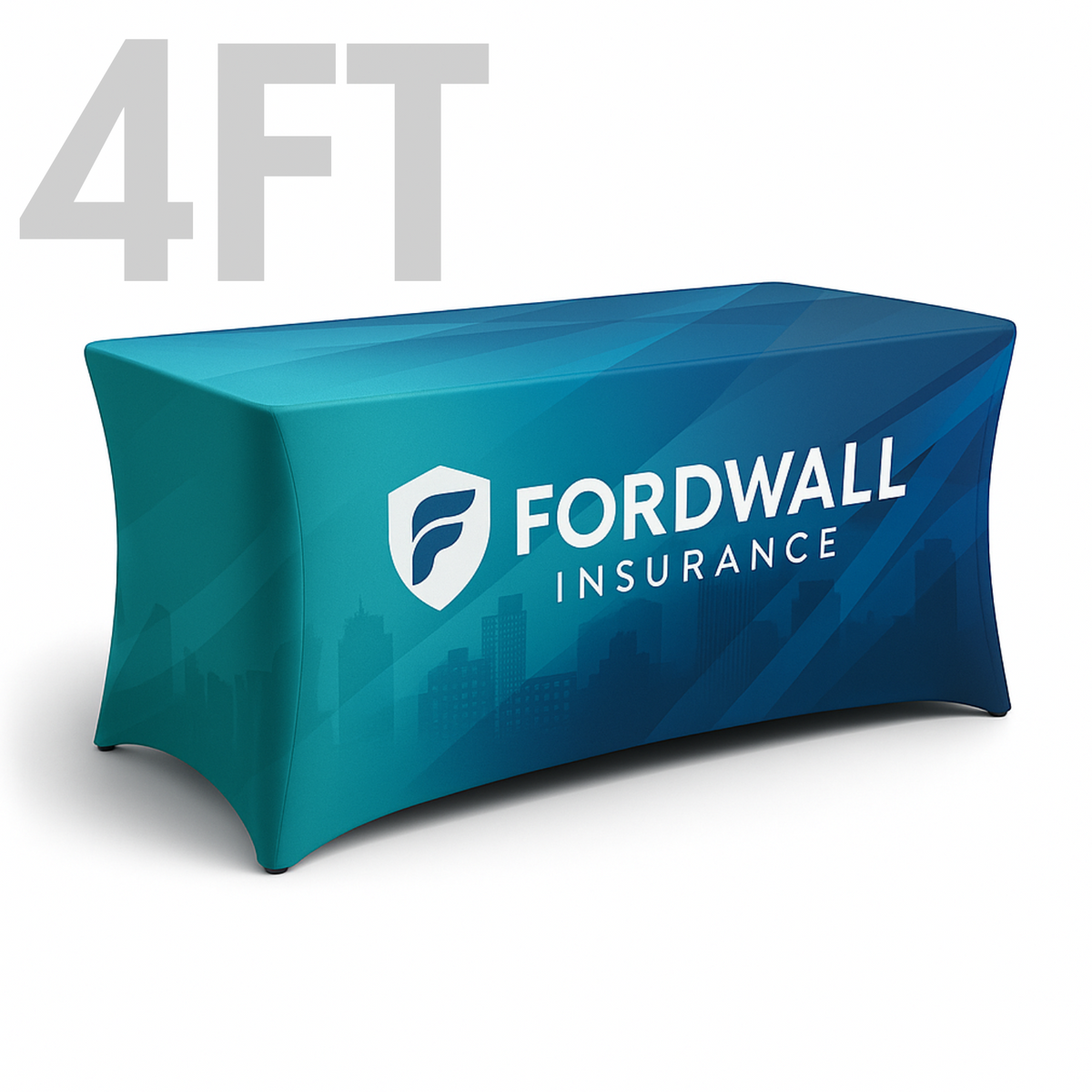 Command attention with a table cover built to stretch your branding further. This sleek, contoured cover fits snugly around all four sides of the table, delivering a smooth, wrinkle-free finish and vibrant, edge-to-edge full-color print. Made from durable 4-way stretch fabric (85% polyester, 15% spandex, 230gsm), it’s designed to perform at trade shows, conferences, and indoor or short-term outdoor events.